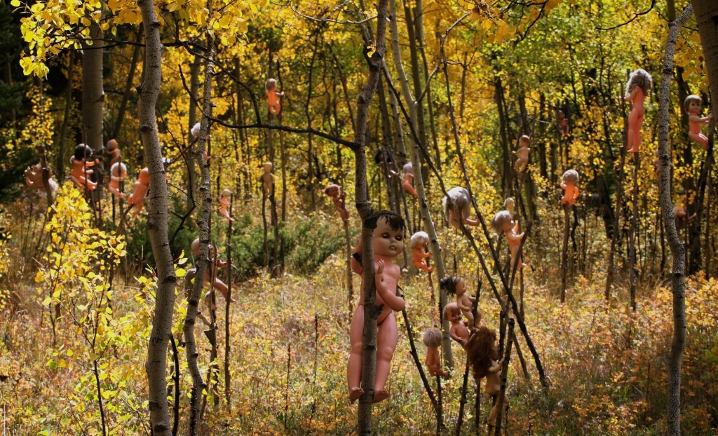 Instead of majestic beauty, I found the Valley of the Dolls! Hundreds of dolls impaled to trees.