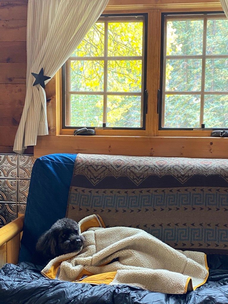 Our home away from home was this sweet little cabin below. We BBQ’d nearly every night, hung some sweet fairy lights for ambience, built fires and played a TON of cribbage. Of course I had to throw in a token image of our sweet Yogi with his new hairscut.